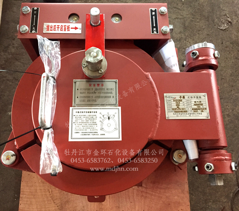 快開(kāi)盲板是用于壓力管道或壓力容器的圓形開(kāi)口上的一種機(jī)械裝置。一般由筒體法蘭、頭蓋、勾圈或卡箍、密封圈、安全聯(lián)鎖機(jī)構(gòu)、開(kāi)閉機(jī)構(gòu)、轉(zhuǎn)臂及短節(jié)(需要時(shí))等部件構(gòu)成。